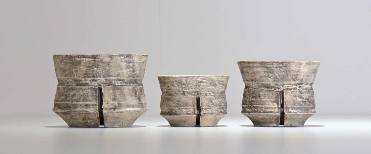 茨城県にて作陶されており、土のみで質感・色合いの変化を表現するのが特徴です。幾重にも土を塗り重ねたり、はがしたりをくり返すことにより生み出される土味を感じてみてください。