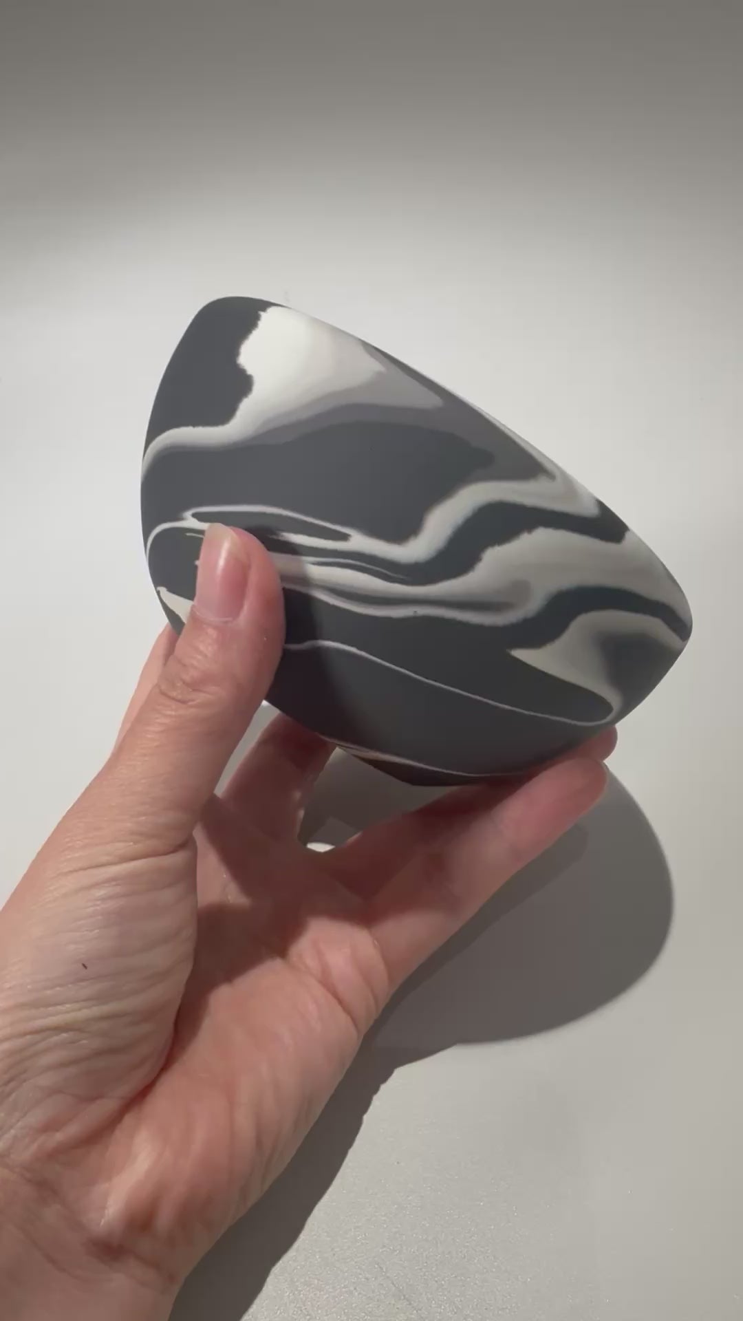 色の異なる磁土を一緒に練り合わせて成形し、全体を削ってゆくと様々な模様が表出してきます。